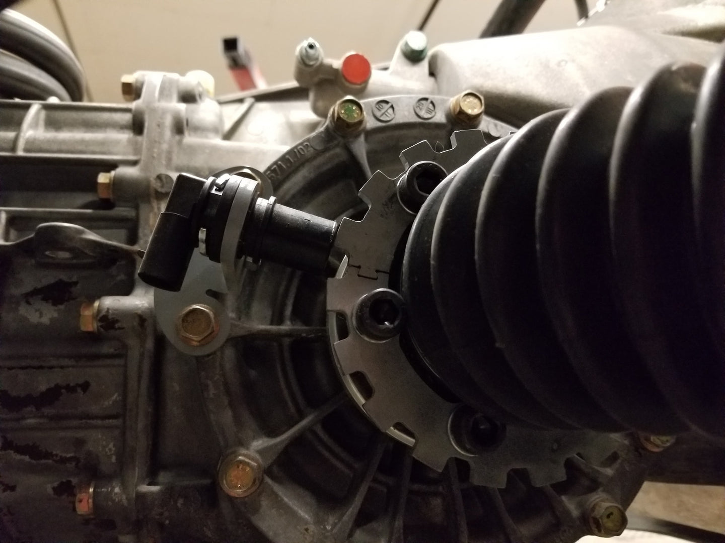 Transaxle mounted vehicle speed sensor (VSS) with VR sensor. Inputs speed to ECU.